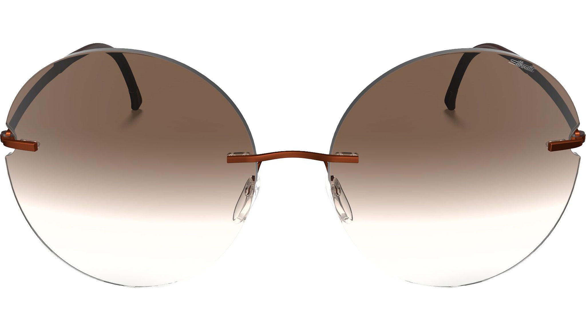 Silhouette Rimless Shades 8190 in 2540 frame color featuring classic brown gradient lenses. Calella, with its subtle design and oversized lenses, integrates sun protection and comfort, further enhanced by ultra-lightweight titanium temples. These sunglasses are your perfect accessory wherever you roam. Offering superior wearing comfort, these hypoallergenic and screwless glasses have a base 6 curvature. The lenses are crafted with a backside anti-reflective coating, made from high-impact polycarbonate, and provide full protection from UV A, B, and C rays, equivalent to UV 400. Silhouette prioritizes the perfect harmony of frames and lenses to ensure an optimal visual experience, as lenses are specifically tailored to their respective frames. Silhouette's Vision Sensation® lenses, crafted predominantly by hand and with the highest precision, are 100% made in Austria. Furthermore, the advantages of Silhouette's Vision Sensation® technology are now available in their sunglasses as well.