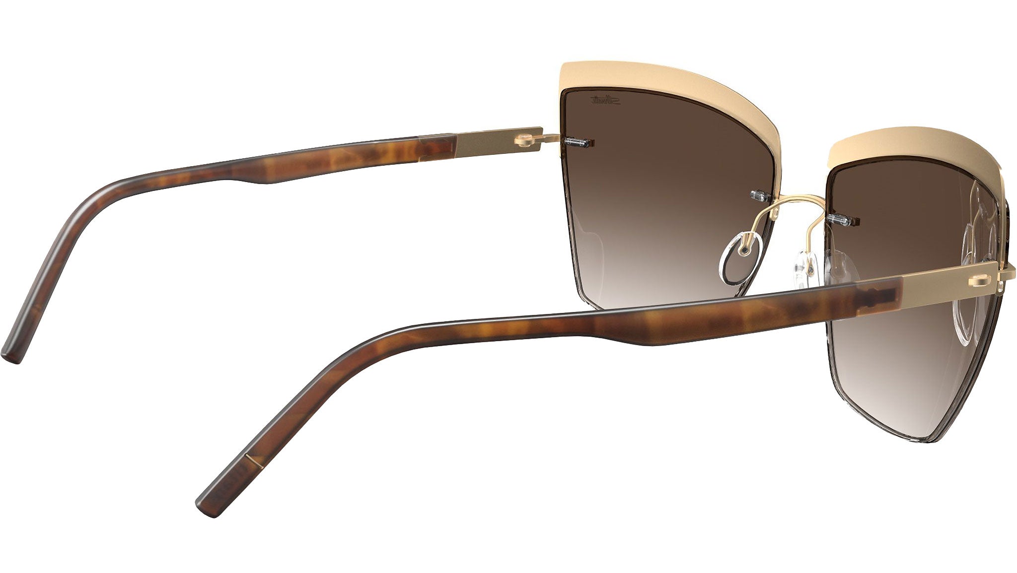 Silhouette Accent Shades 8189 in 7530 frame color featuring classic brown gradient lenses. At Silhouette, the emphasis is placed on more than just superior quality and innovative design; functionality and protection are also pivotal elements in all their sunglasses. An ideal illustration of this is the patented Silhouette Light Management® technology, which provides unparalleled shielding against detrimental UV rays and blue light. Silhouette's meticulously engineered lens transmittance ranges offer a delightful brightening effect and vibrant, high-contrast color perception. This, along with exceptional anti-glare protection, makes their sunglasses truly outstanding.