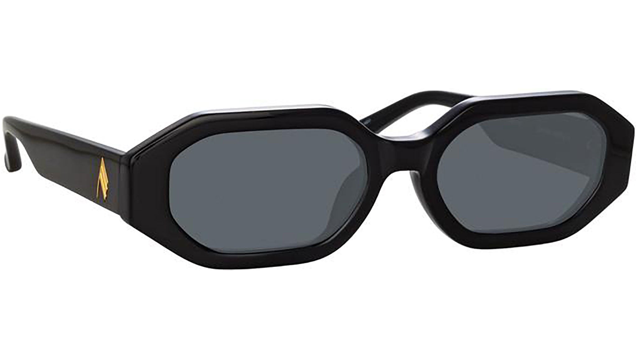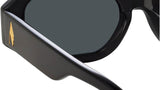The newest addition to The Attico family, the Irene sunglasses bring the attitude of the Milan fashion house with them. Sculpted from recycled black acetate the angular hexagonal frames are highly polished to bring softness to their edge. The temples bear a gold monogram logo and the style is completed with solid grey lenses for 100% UV protection.