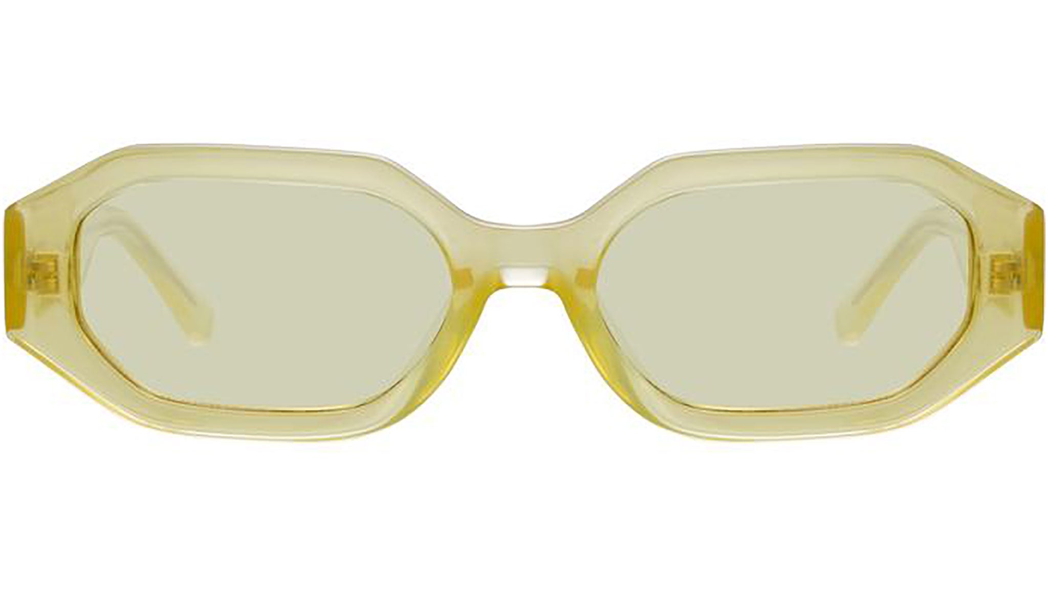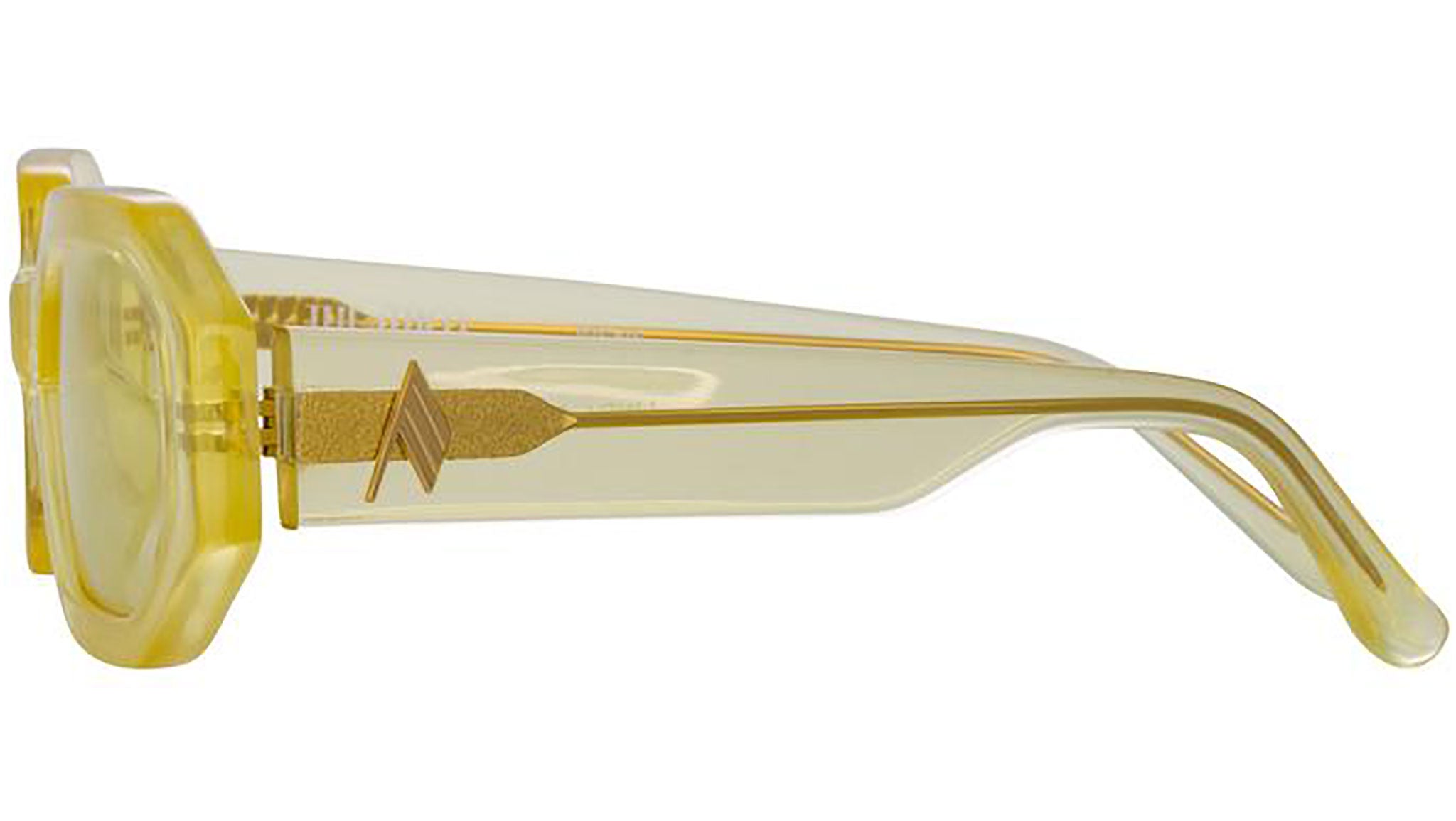 A core silhouette from the collaboration with The Attico, the Irene sunglasses are introduced in new seasonal shades. Sculpted from a sunny yellow acetate the angular hexagonal frames are highly polished to bring softness to their edge. The temples bear a yellow monogram logo and the style is completed with tonal yellow lenses for 100% UV protection.