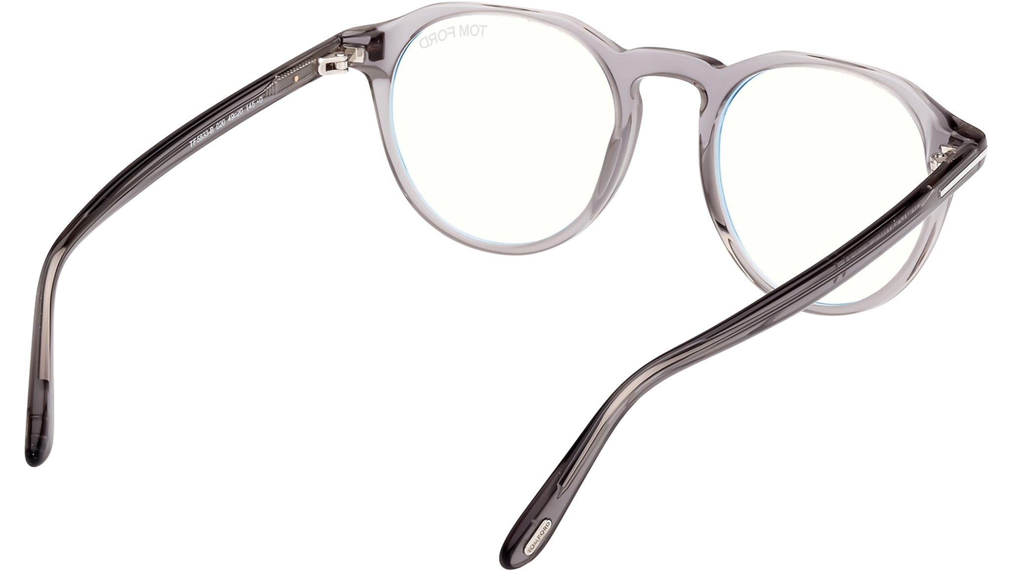 Occhiali da vista Tom Ford uomo modello FT5833-B in acetato colore 020 grigio lucido crystal con lenti demo. Codice brand: FT5833. Codice colore: 020. Rivenditore autorizzato Tom Ford online. Gli occhiali vengono consegnati con custodia e accessori originali e sono coperti da garanzia standard di 12 mesi del produttore.