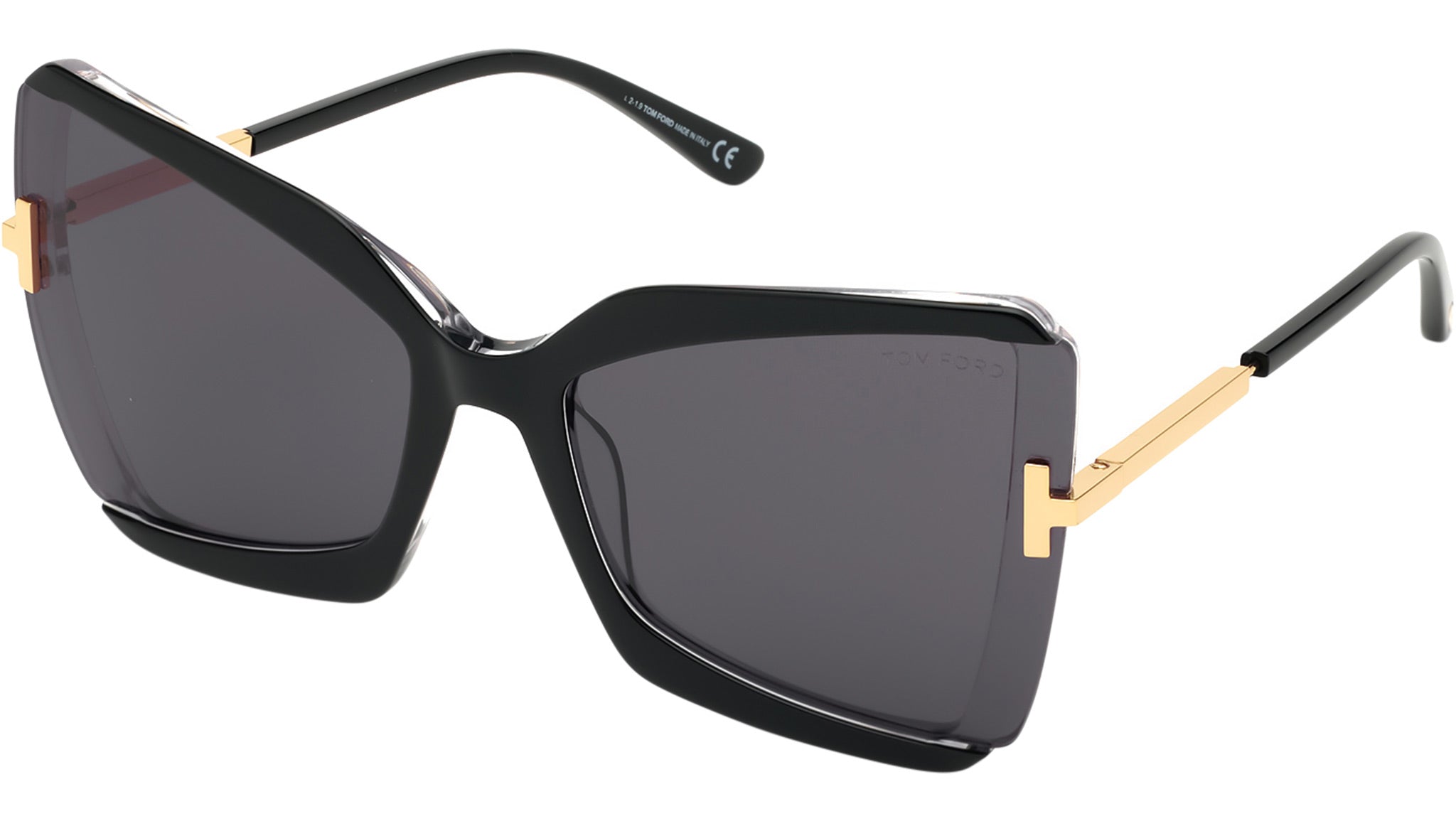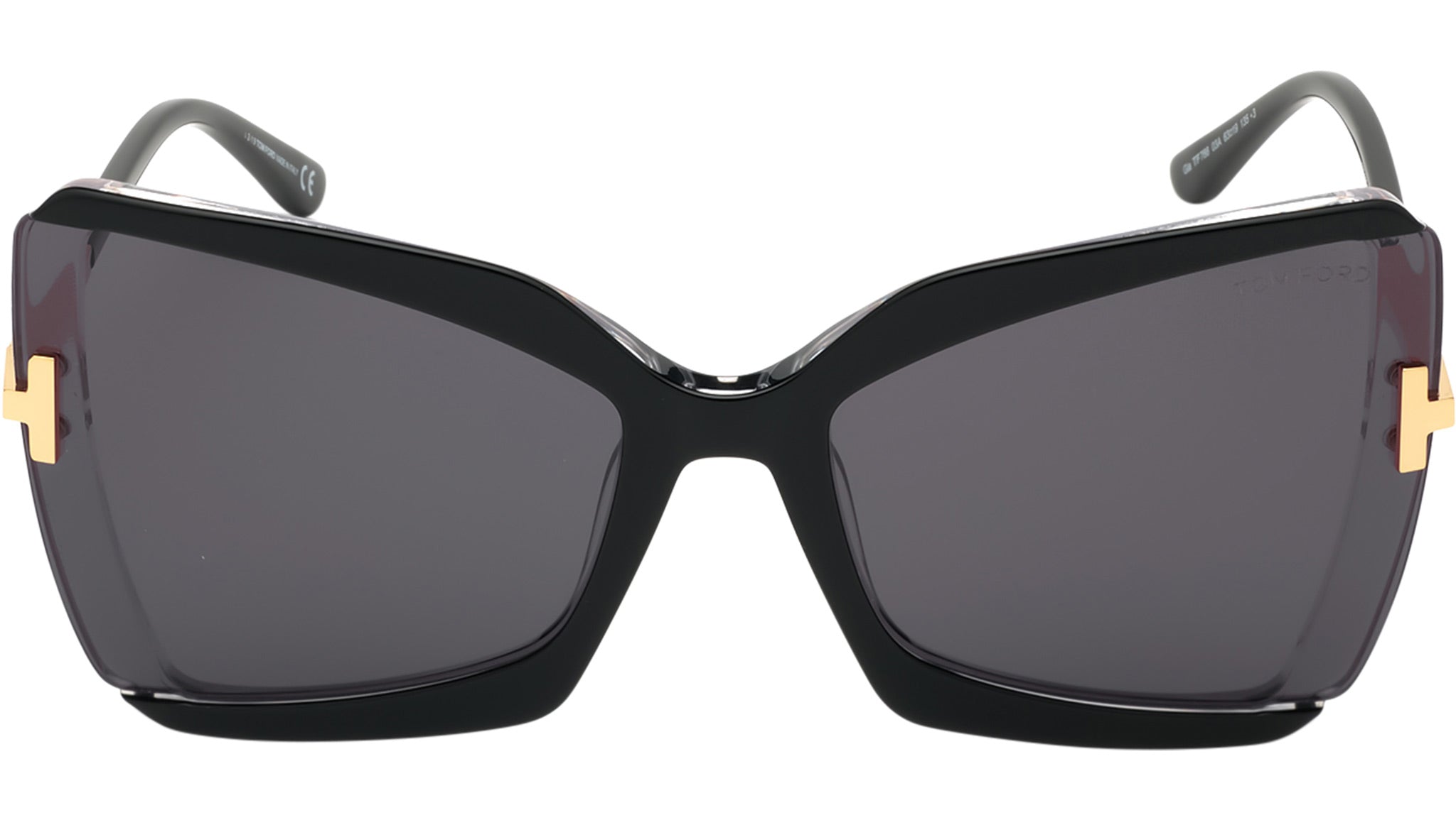 Occhiali da sole Tom Ford donna modello Gia FT0766 in acetato nero / oro cristallo con lenti color grigio. Codice brand: 0766. Codice colore: 03A. Rivenditore autorizzato Tom Ford online. Gli occhiali vengono consegnati con custodia e accessori originali e sono coperti da garanzia standard di 12 mesi del produttore.