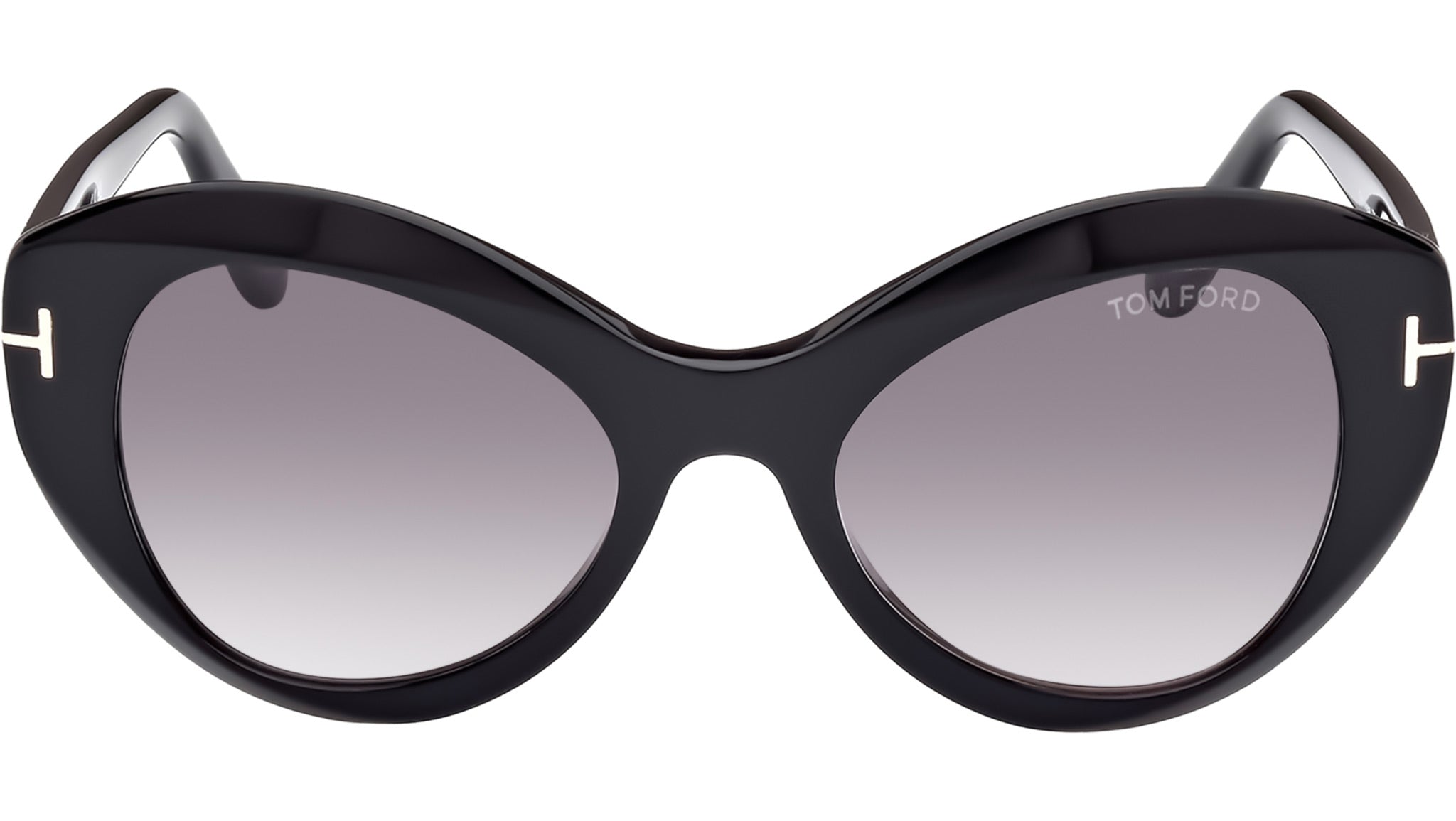 Occhiali da sole Tom Ford donna modello Guinevere FT1084 in acetato nero lucido con lenti color grigio fumo sfumato. Codice brand: 1084. Codice colore: 01B. Rivenditore autorizzato Tom Ford online. Gli occhiali vengono consegnati con custodia e accessori originali e sono coperti da garanzia standard di 12 mesi del produttore.