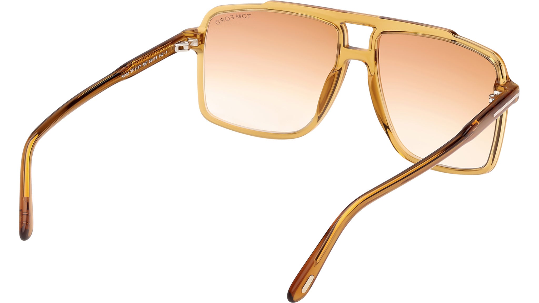 Occhiali da sole Tom Ford uomo modello Kemp FT1177 in acetato giallo scuro lucido con lenti color marrone sfumato. Codice brand: 1177. Codice colore: 39F. Rivenditore autorizzato Tom Ford online. Gli occhiali vengono consegnati con custodia e accessori originali e sono coperti da garanzia standard di 12 mesi del produttore.