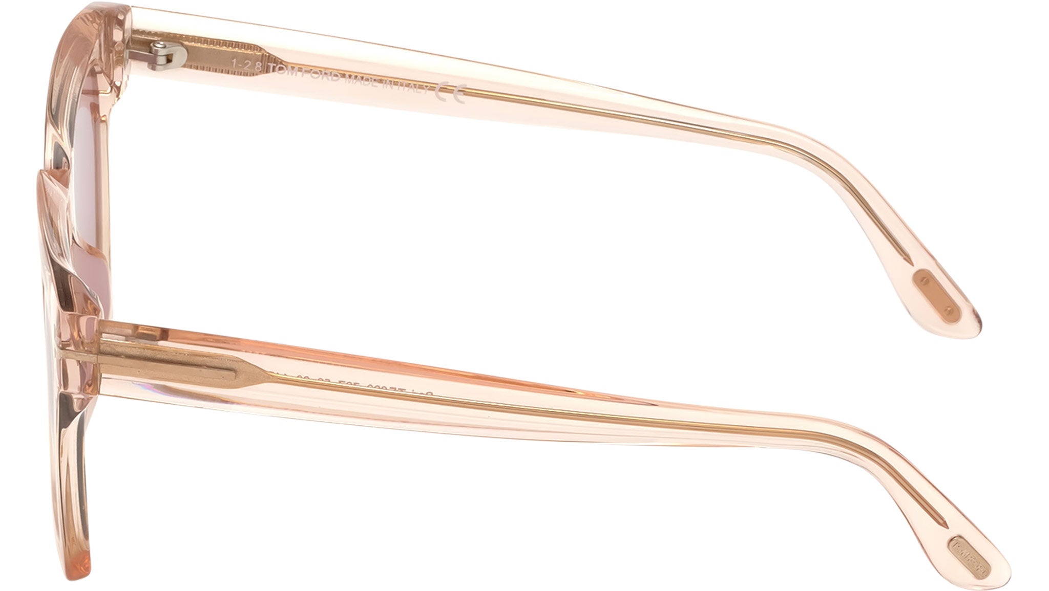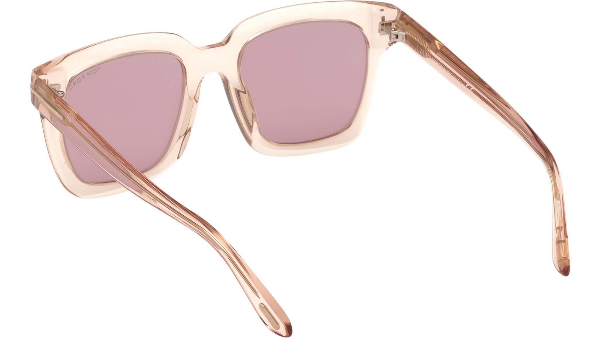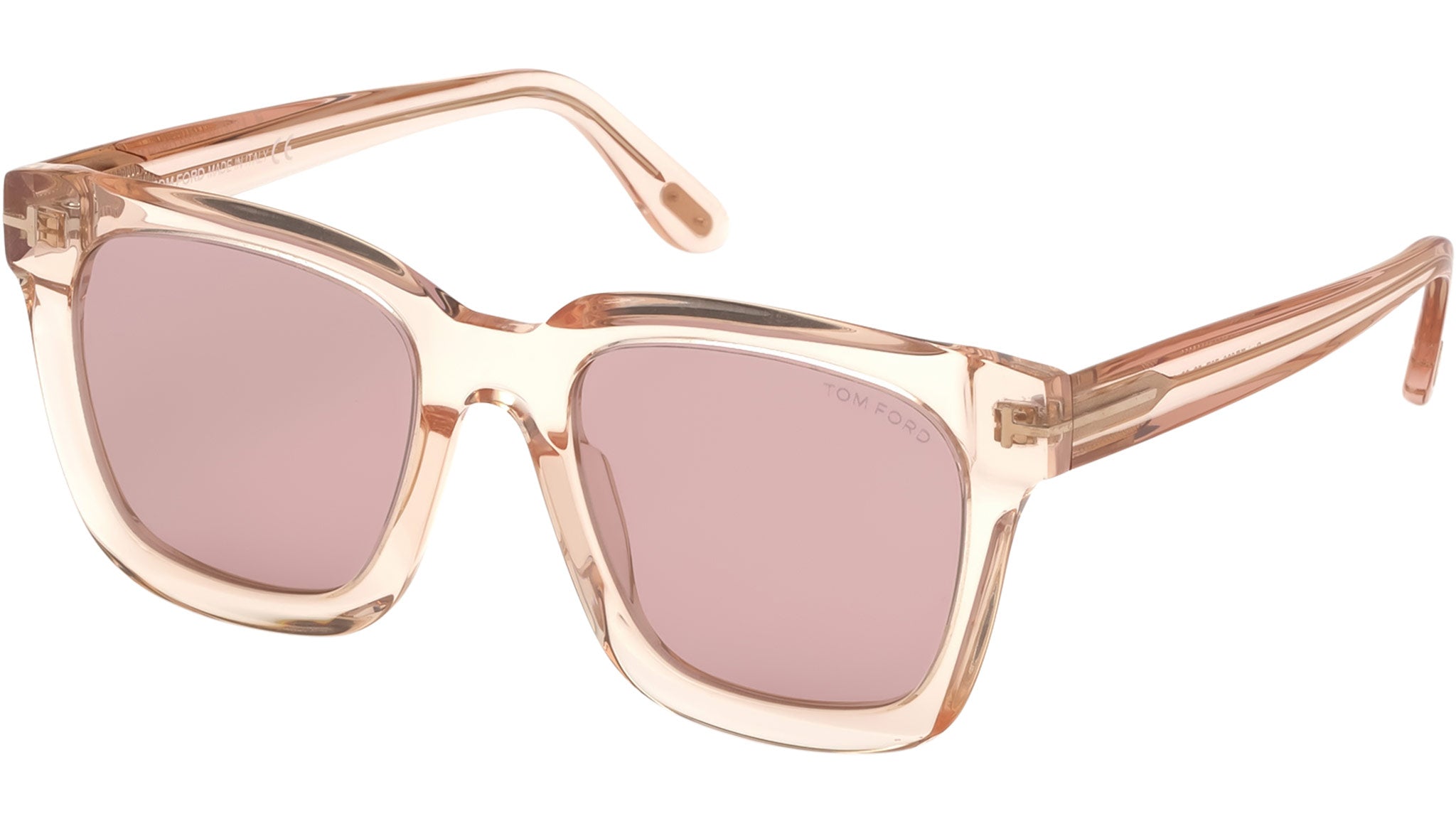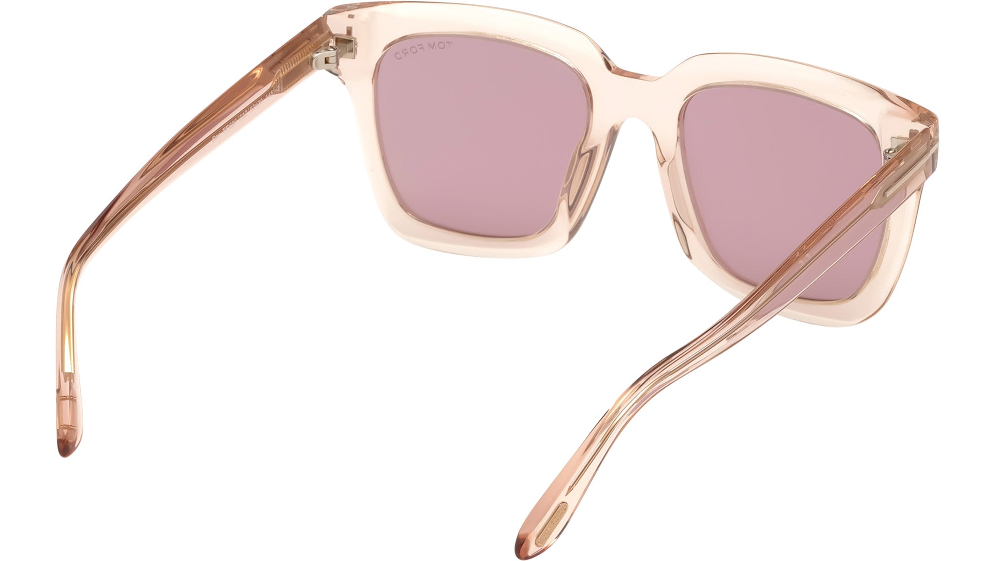 Occhiali da sole Tom Ford donna modello Sari FT0690 in acetato rosa trasparente con lenti color rosa/oro chiaro flash a specchio. Codice brand: 0690. Codice colore: 72Z. Rivenditore autorizzato Tom Ford online. Gli occhiali vengono consegnati con custodia e accessori originali e sono coperti da garanzia standard di 12 mesi del produttore.
