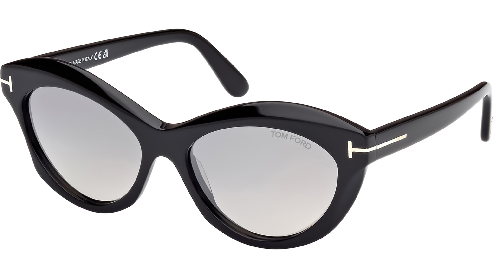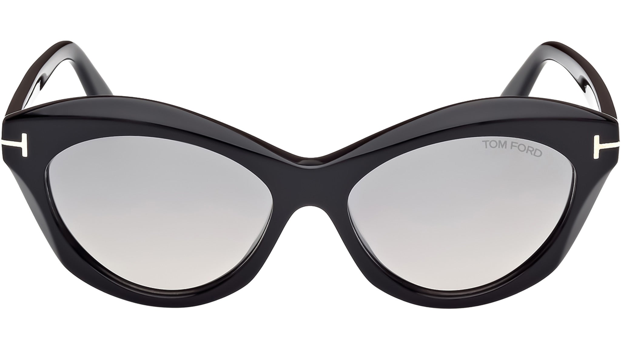 Occhiali da sole Tom Ford donna modello Toni FT1111 in acetato nero lucido con lenti color specchio fumo. Codice brand: 1111. Codice colore: 01C. Rivenditore autorizzato Tom Ford online. Gli occhiali vengono consegnati con custodia e accessori originali e sono coperti da garanzia standard di 12 mesi del produttore.
