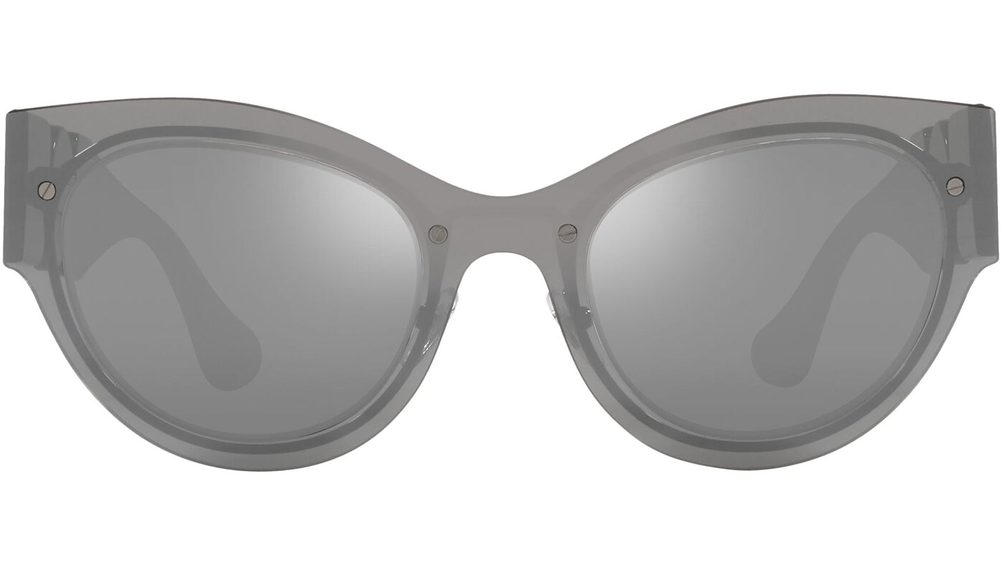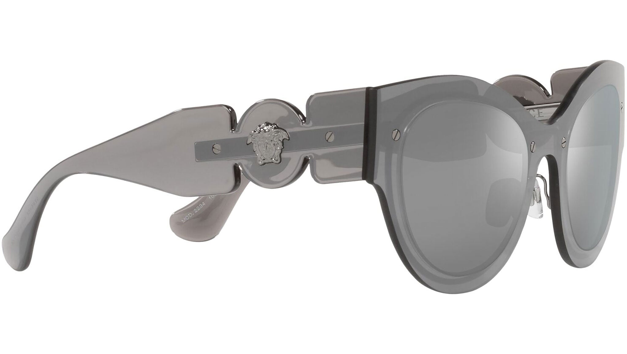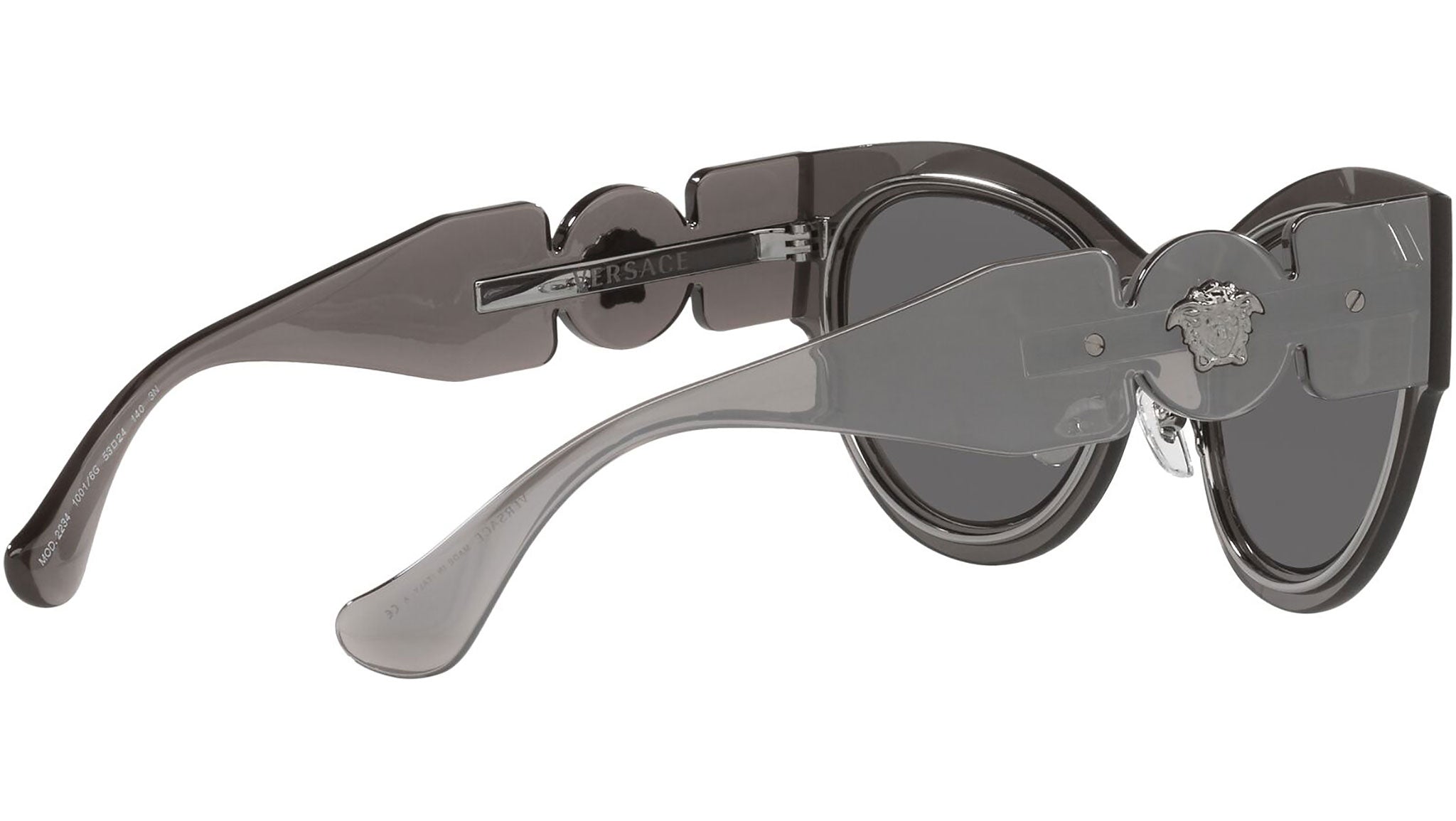 Occhiali da sole Versace modello VE2234 codice colore 10016G grigio trasparente a specchio argento con lenti color grigio chiaro a specchio argento. Dedicata a chi desidera uno stile contemporaneo, sexy, sofisticato e dalla forte personalità, Versace è una delle case di alta moda e lusso più iconiche e famose al mondo. La collezione da sole combina innovazione tecnica e stile essenziale del brand, ed è fortemente caratterizzata dagli elementi decorativi che da sempre contraddistinguono la Maison.