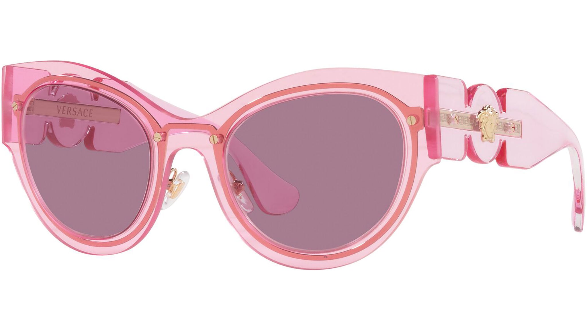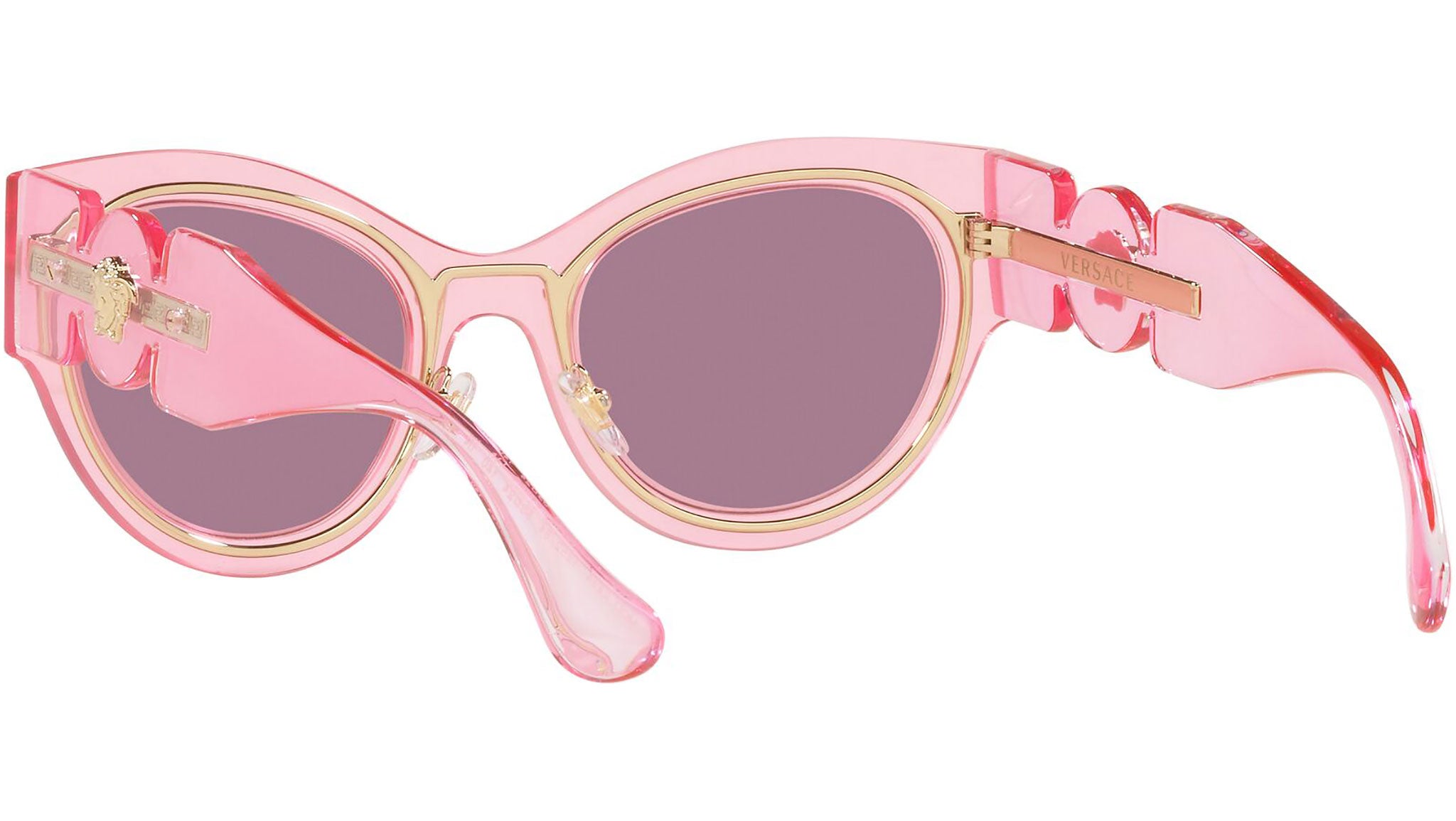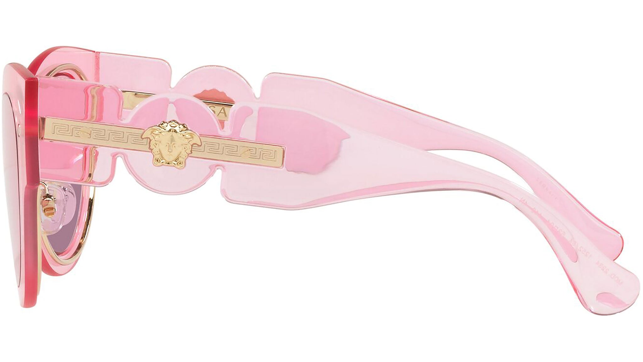 Occhiali da sole Versace modello VE2234 codice colore 125284 rosa trasparente con lenti color rosa. Dedicata a chi desidera uno stile contemporaneo, sexy, sofisticato e dalla forte personalità, Versace è una delle case di alta moda e lusso più iconiche e famose al mondo. La collezione da sole combina innovazione tecnica e stile essenziale del brand, ed è fortemente caratterizzata dagli elementi decorativi che da sempre contraddistinguono la Maison.