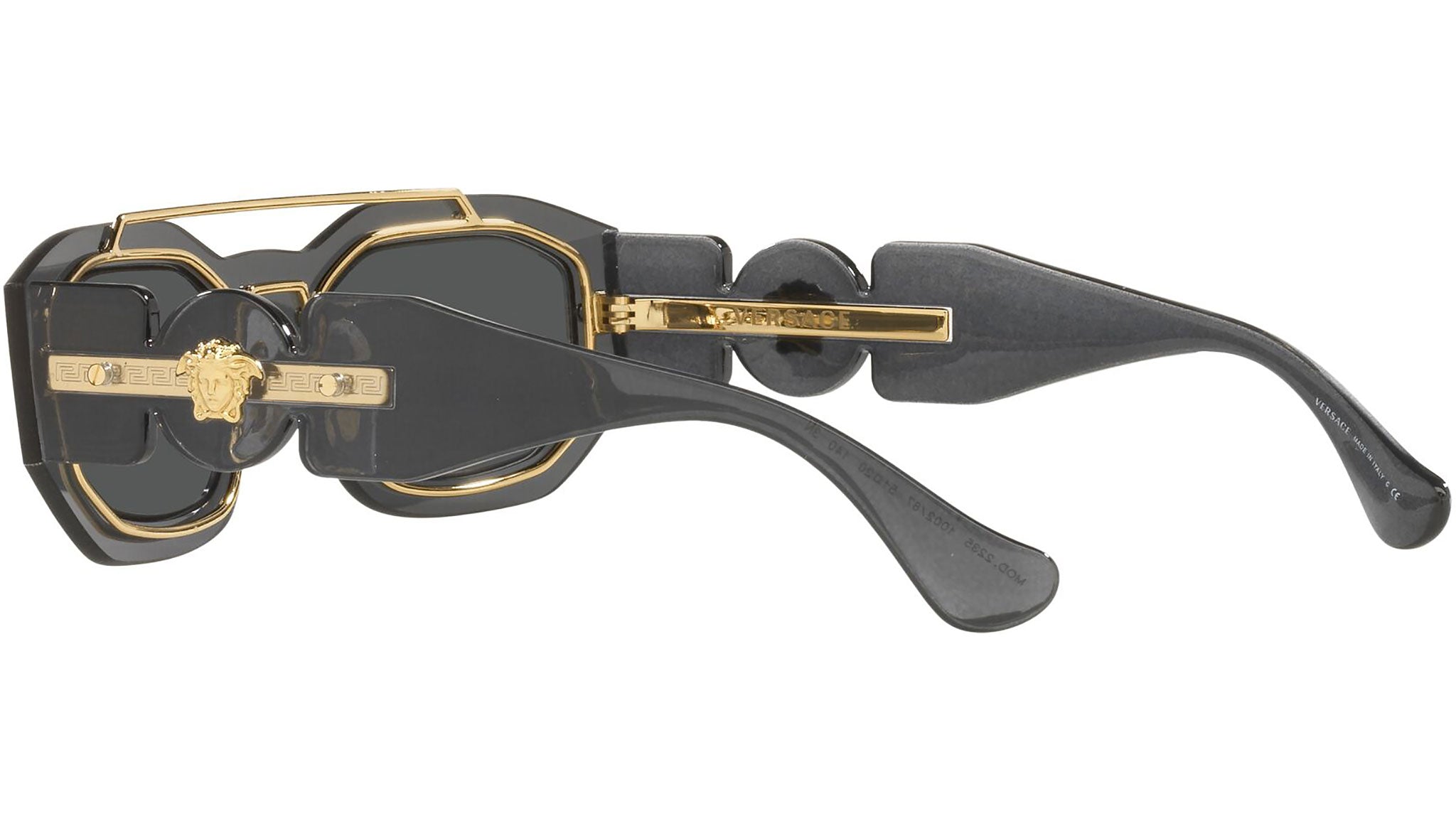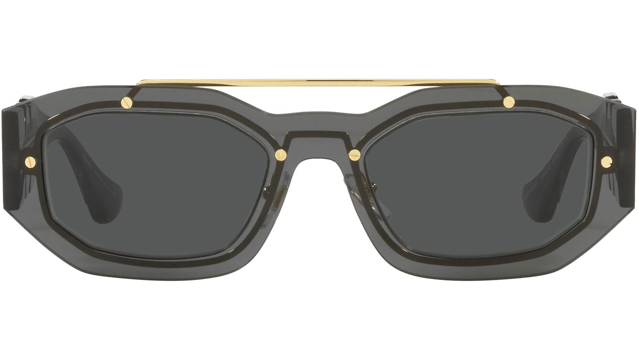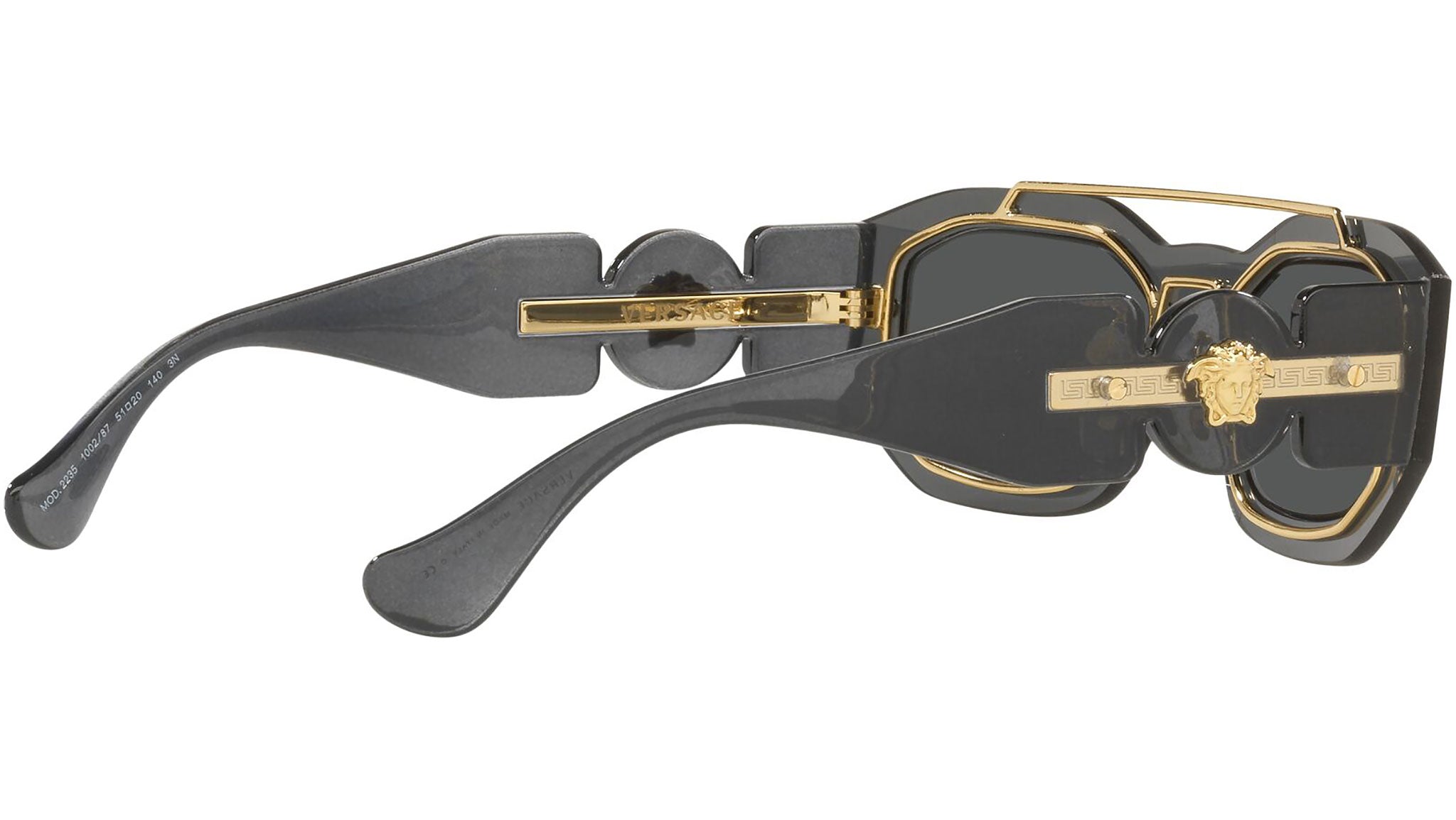 Occhiali da sole Versace modello VE2235 codice colore 100287 grigio scuro trasparente con lenti color grigio scuro. Dedicata a chi desidera uno stile contemporaneo, sexy, sofisticato e dalla forte personalità, Versace è una delle case di alta moda e lusso più iconiche e famose al mondo. La collezione da sole combina innovazione tecnica e stile essenziale del brand, ed è fortemente caratterizzata dagli elementi decorativi che da sempre contraddistinguono la Maison.