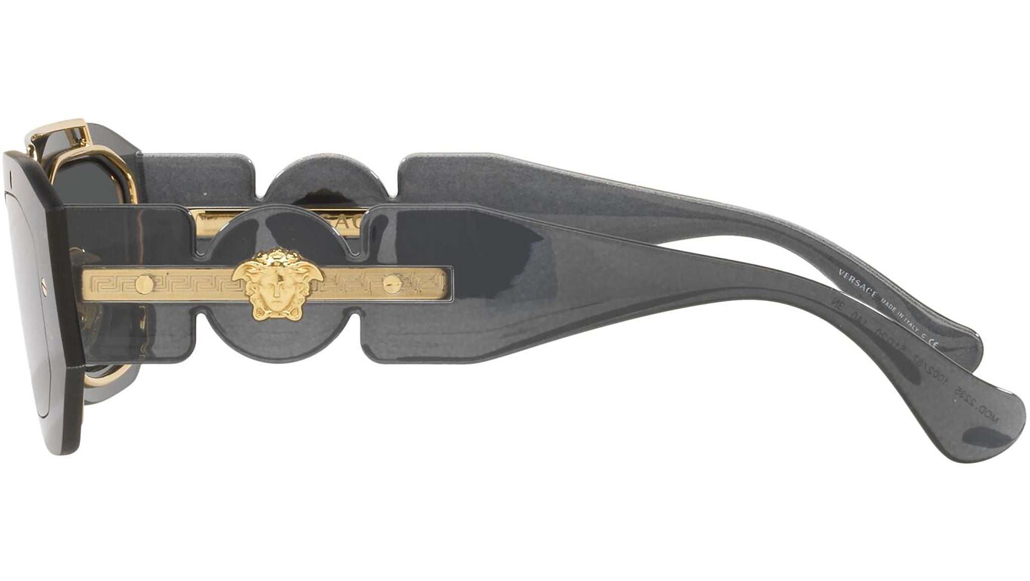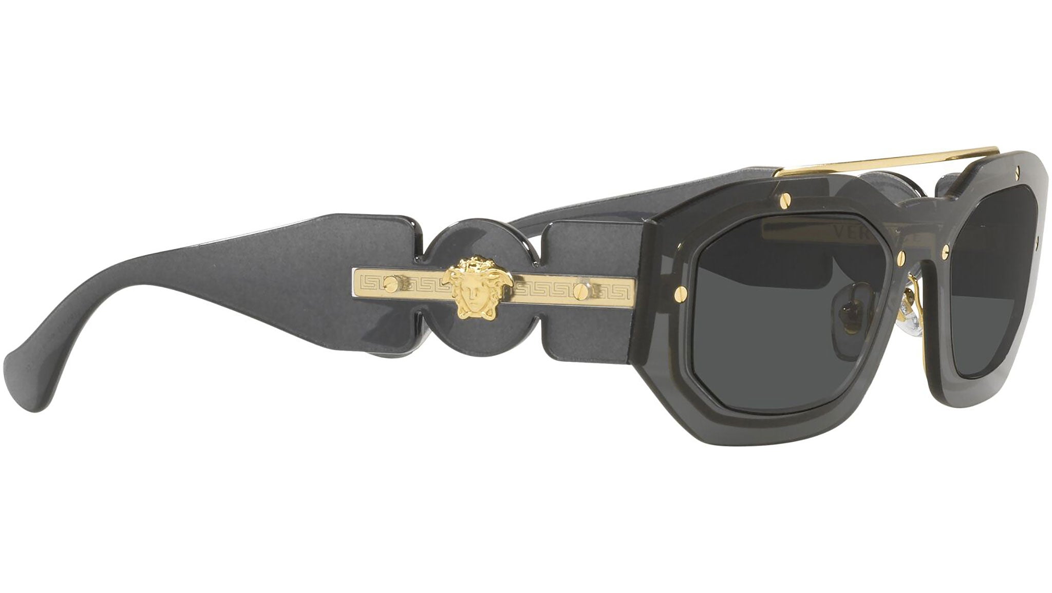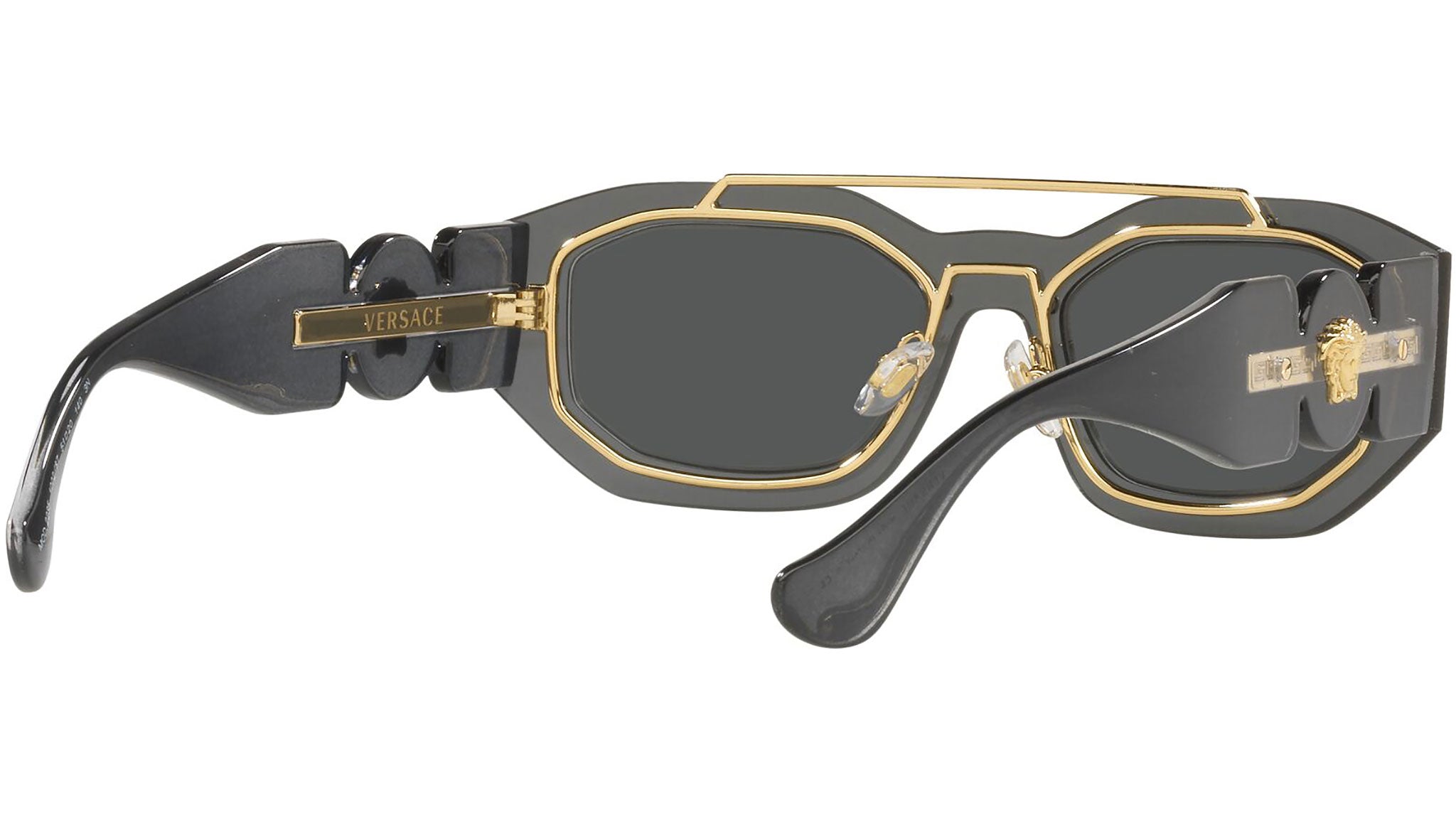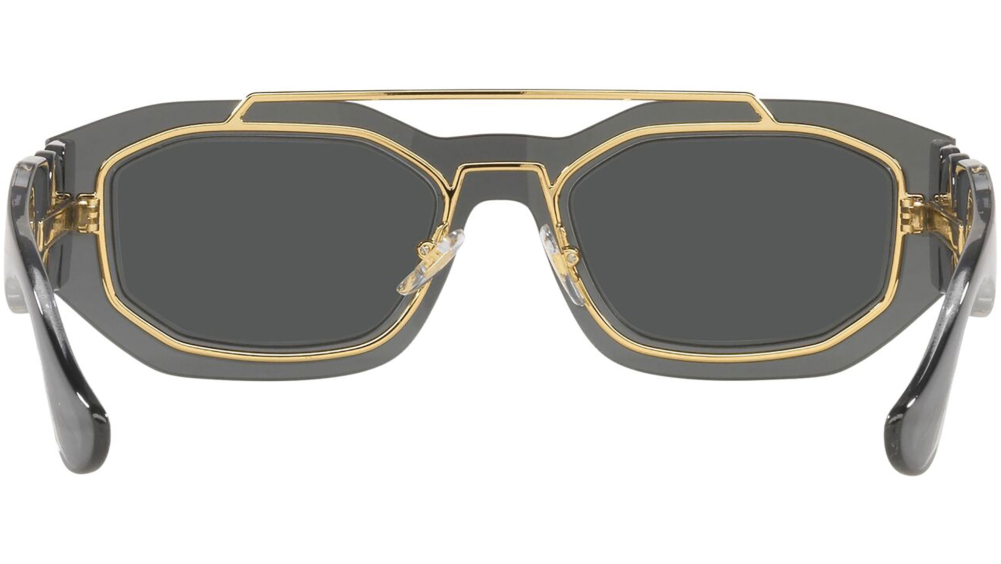 Occhiali da sole Versace modello VE2235 codice colore 100287 grigio scuro trasparente con lenti color grigio scuro. Dedicata a chi desidera uno stile contemporaneo, sexy, sofisticato e dalla forte personalità, Versace è una delle case di alta moda e lusso più iconiche e famose al mondo. La collezione da sole combina innovazione tecnica e stile essenziale del brand, ed è fortemente caratterizzata dagli elementi decorativi che da sempre contraddistinguono la Maison.