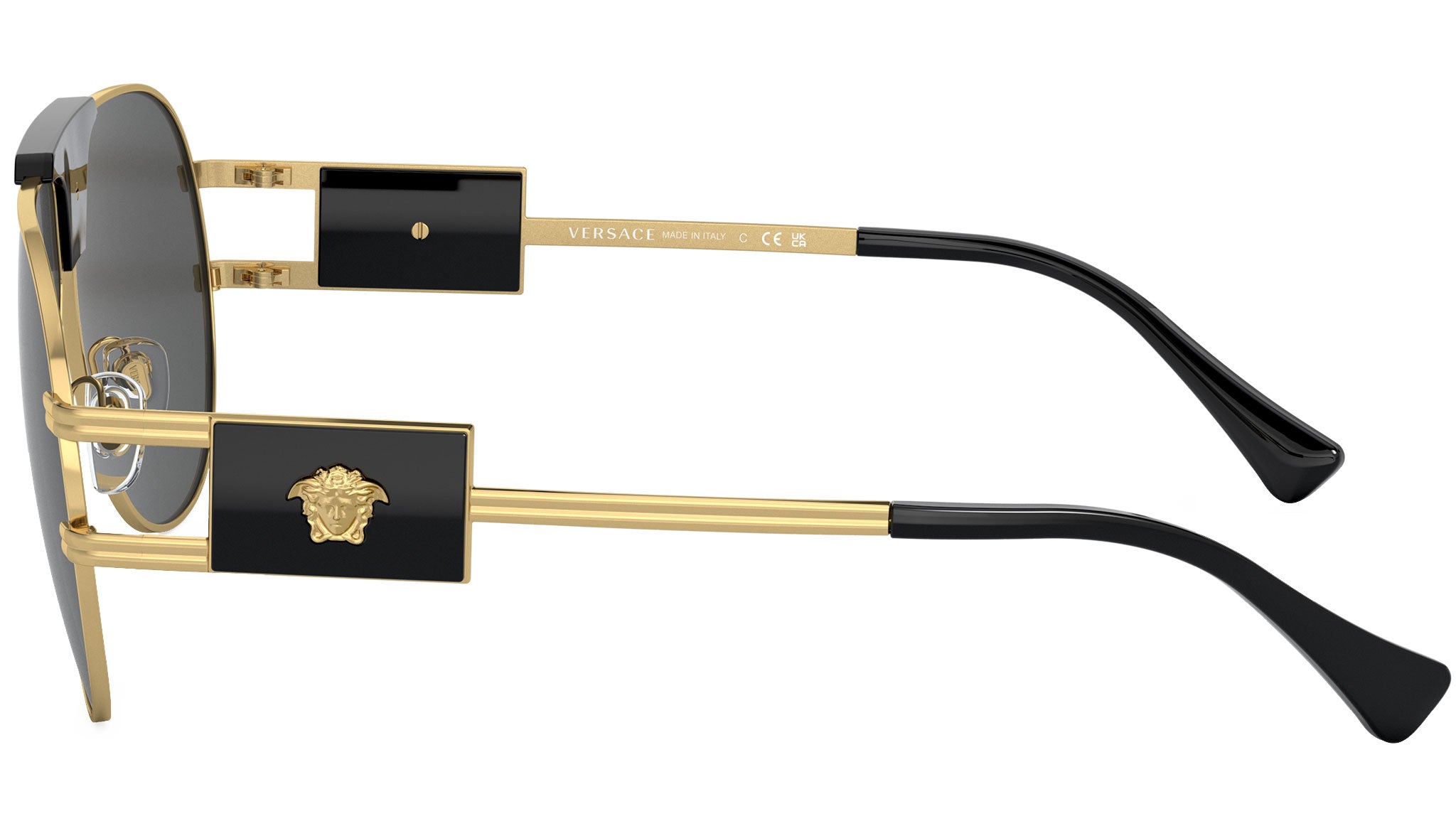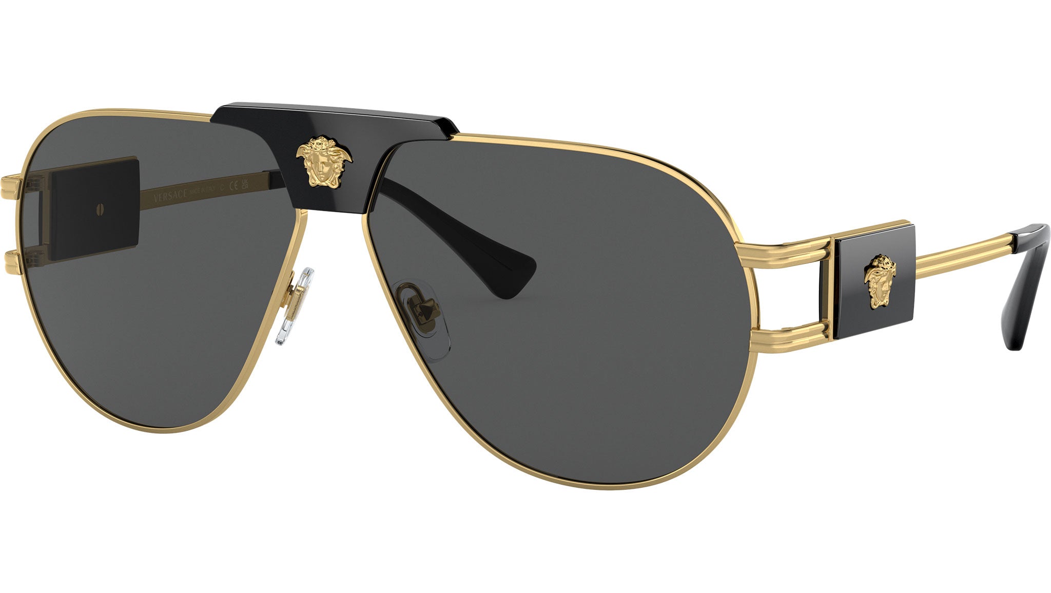 Occhiali da sole Versace uomo modello 2252 full rim in acciaio color oro con lenti grigio scuro base 4. Naselli regolabili. Linea: Iconic. Codice brand: 0VE2252. Codice colore: 100287. Rivenditore autorizzato online Versace Eyewear. Ogni prodotto Versace viene consegnato con astuccio originale e accessori ed è coperto da garanzia del produttore di 12 mesi.