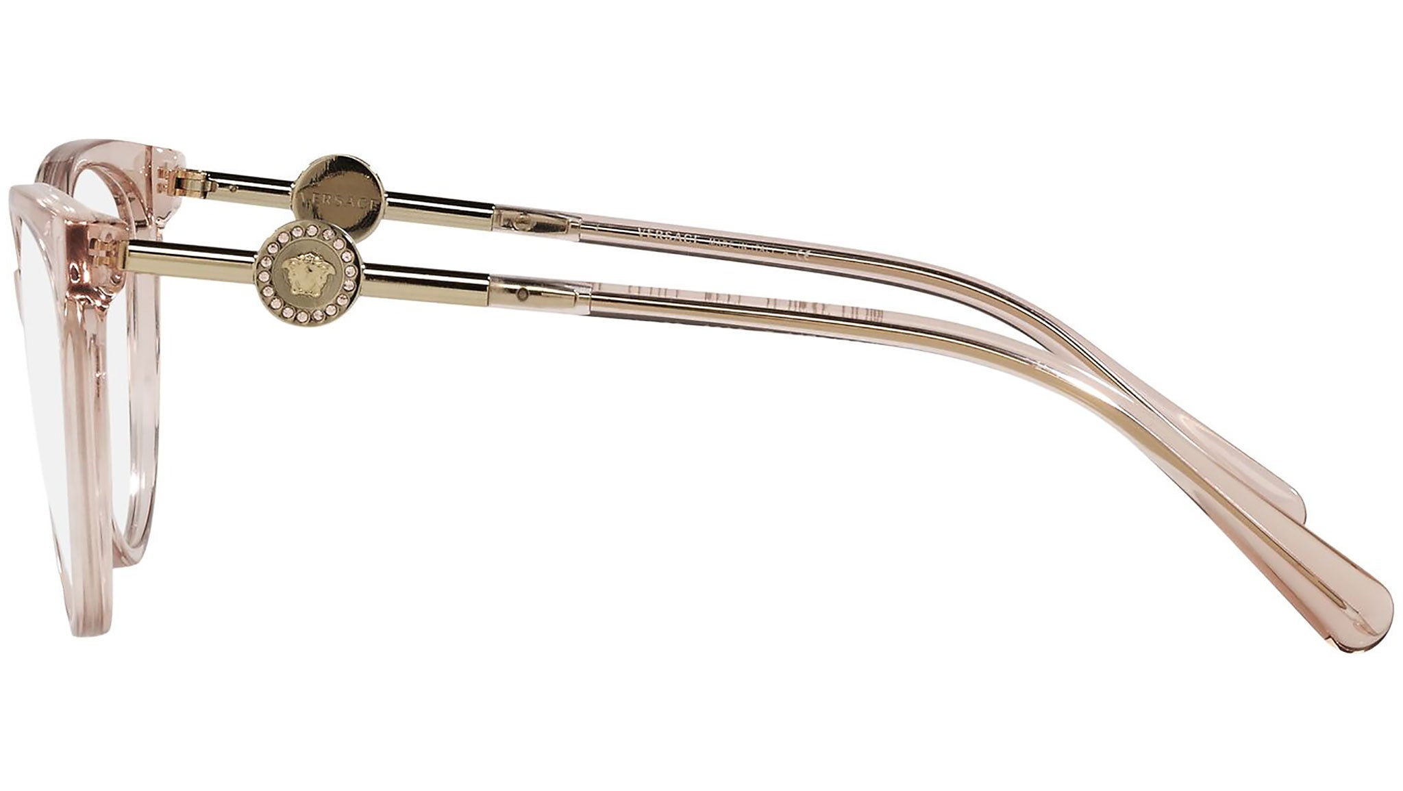 Occhiali da vista Versace modello VE3298B variante colore rosa trasparente, codice colore 5339. Dedicata a chi desidera uno stile contemporaneo, sexy, sofisticato e dalla forte personalità, Versace è una delle case di alta moda e lusso più iconiche e famose al mondo. La collezione eyewear combina innovazione tecnica e stile essenziale del brand, ed è fortemente caratterizzata dagli elementi decorativi che da sempre contraddistinguono la Maison.