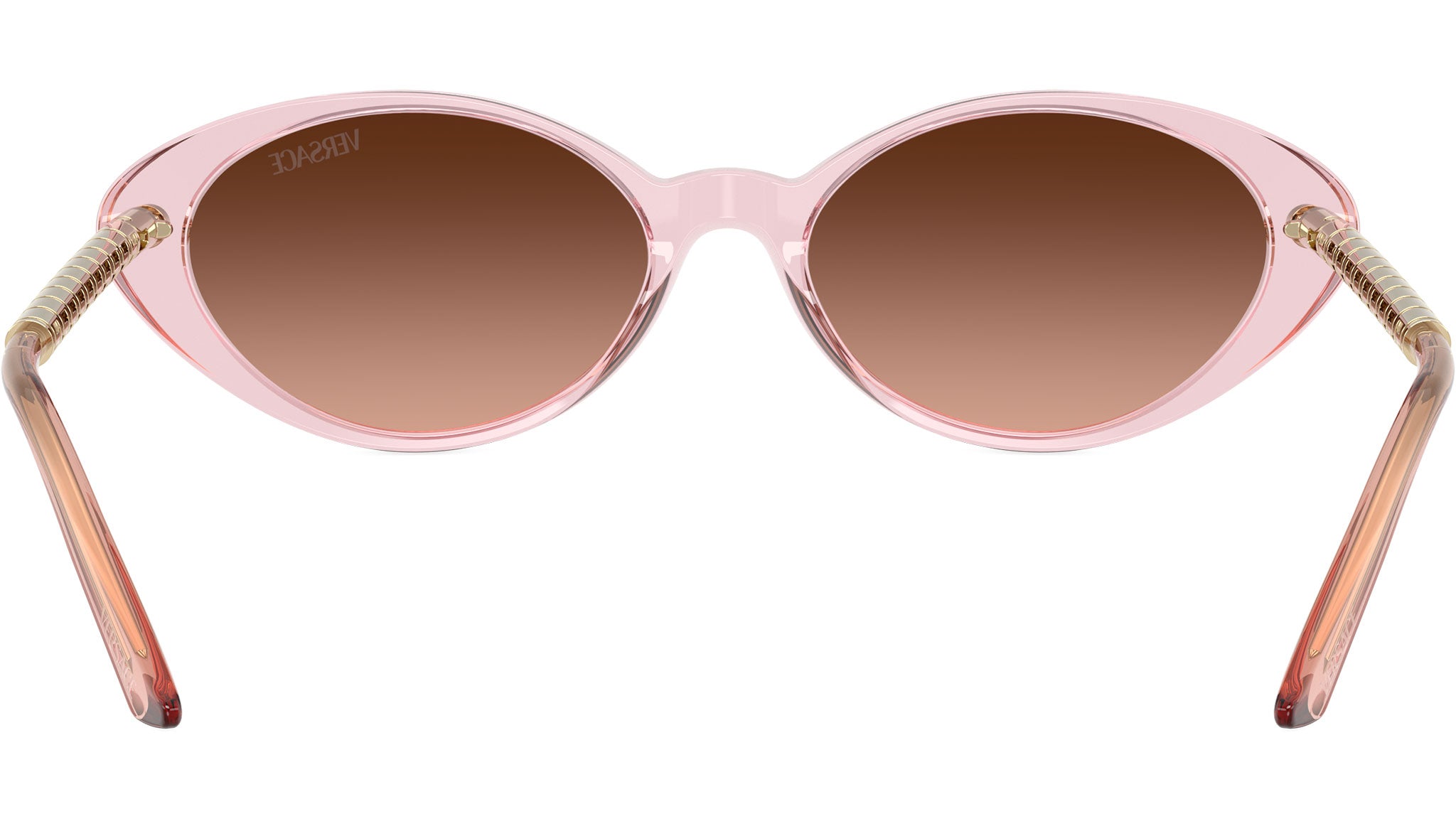Occhiali da sole Versace donna modello 4469 full rim in acetato color rosa trasparente con lenti rosa sfumato grigio base 4. Vestibilità a ponte alto. Linea: Daily Heritage. Codice brand: 0VE4469. Codice colore: 54725M. Rivenditore autorizzato online Versace Eyewear. Ogni prodotto Versace viene consegnato con astuccio originale e accessori ed è coperto da garanzia del produttore di 12 mesi.