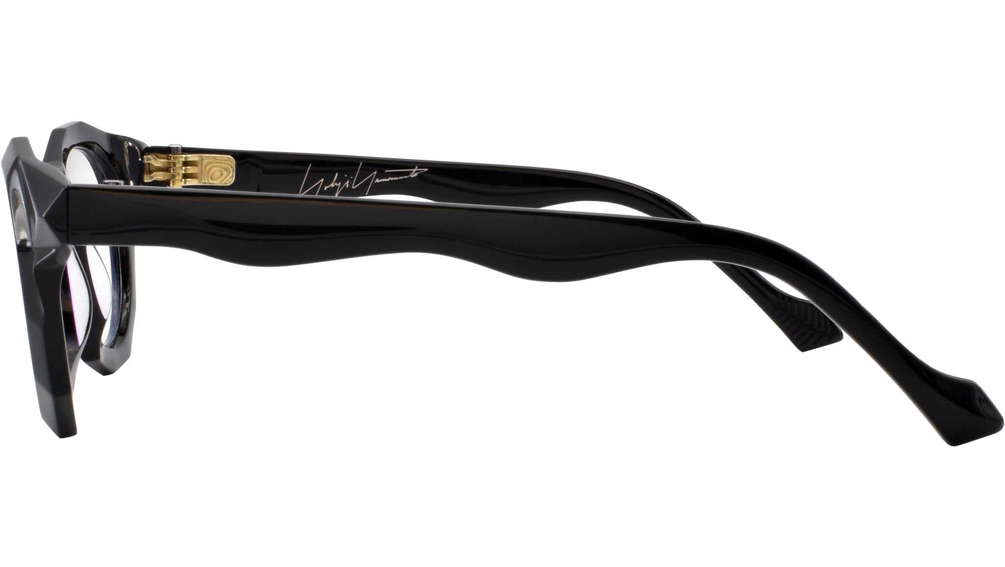 Yohji Yamamoto Eyewear Collection model LOOK 010 color code A001 in pure black / japan gold. With this new collection, Yohji Yamamoto is taking a more experimental direction, inspired by the earliest iterations of the material innovations that achieve styles in robust, dramatic designs and a strong Brand attitude.